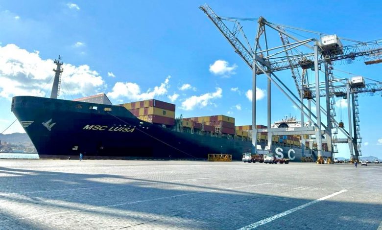 10 December 2023 – Aden container terminal has received the giant container ship MSC LUISA on its maiden visit to the Port of Aden. MSC LUISA is operated by the Swiss shipping line MSC, connecting the Red Sea ports to East Asia. MSC LUISA is capable for carrying approximately 7,000 TEU with a draft of around 13 meters, which affirms Aden Port’s capabilities in serving such colossal vessels transiting through the Bab el Mandeb Strait on their voyages from East Asia to the Red Sea ports.